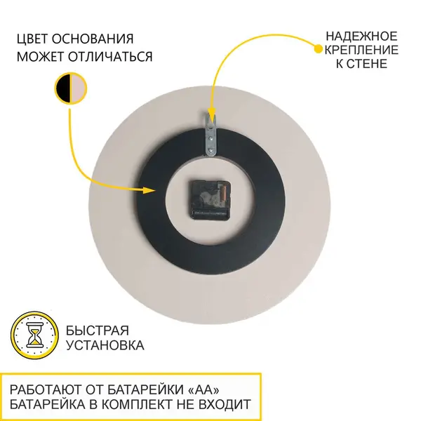 • Мы позаботились о Вас, настенные часы большие доставляются в собранном виде. Чтобы закрепить изделие к стене мы создали понятную инструкцию, которая идет в комплекте.