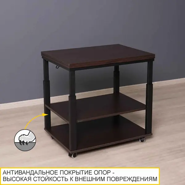 • Подъемный механизм позволяет преобразовать журнальный стол в обеденный, увеличивая высоту до 76 см. Благодаря подъемному механизму стол может использоваться не только как кофейный столик, а также как полноценный стол для кухни или для гостиной.