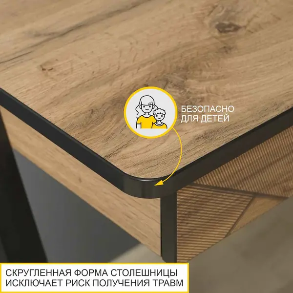 • Скруглённая форма столешницы исключает риск получения травм. Благодаря этому она безопасна для маленьких членов семьи.