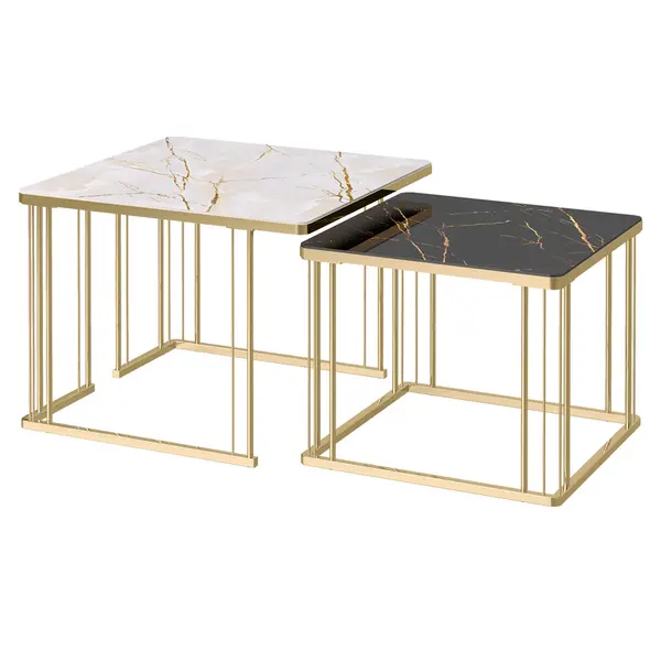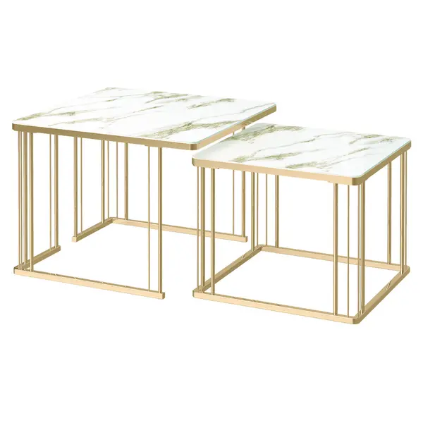 Комплект квадратных журнальных столов Рим 45 (01) Белый мрамор/Золото