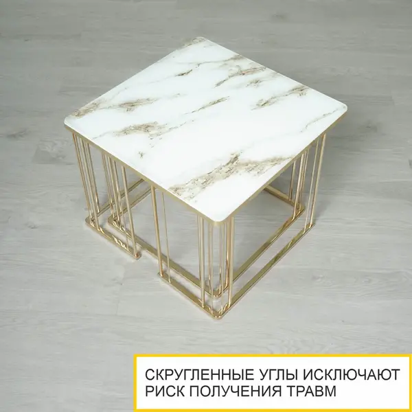 Выбирая комплект квадратных журнальных столиков с золотыми ножками, вы получаете не только стильный, но и практичный элемент мебели. Он легко вписывается в различные интерьеры, будь то современный, классический или минималистичный стиль. Стол Рим 45 станет центром притяжения в вашей гостиной, привнося в пространство атмосферу уюта и комфорта.