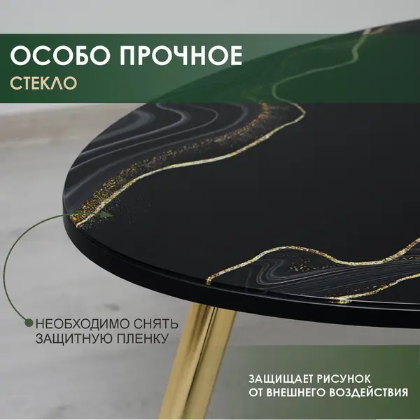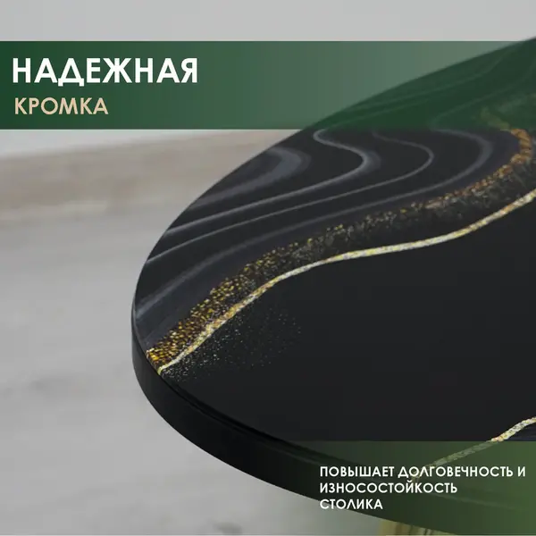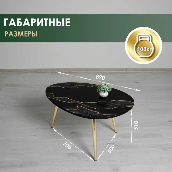 Столик журнальный выполнен в сочетании черной столешницы с золотыми опорами. Такое сочетание - это олицетворение респектабельности, элегантности и безупречного вкуса. Журнальный стол станет акцентом в интерьере любого стиля. Декор в цвете «черный сапфир» с мерцающим «золотым» рисунком придает изысканный и элегантный внешний вид изделию.