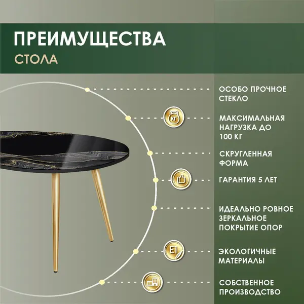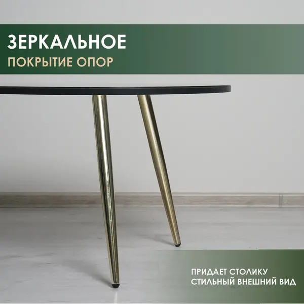 • Идеально ровное зеркальное покрытие опор «золотой глянец» придает изделию стильный внешний вид и подходит для интерьера в любом стиле.