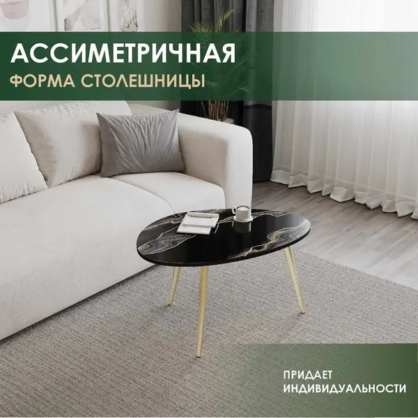 • Оригинальная асимметричная форма столешницы придает индивидуальности и уникальности Вашему столику.