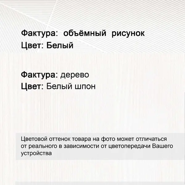 Тумба выполнена в актуальном и универсальном белом цвете с легкой имитацией древесной текстуры. Белый цвет добавляет интерьеру свежести, визуально расширяет пространство и легко сочетается с любыми другими цветами и фактурами.