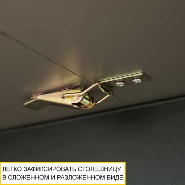 • Замок для фиксации столешницы придает жесткость конструкции как в собранном, так и в разложенном виде. Позволяет прочно зафиксировать столешницу во время эксплуатации стола.