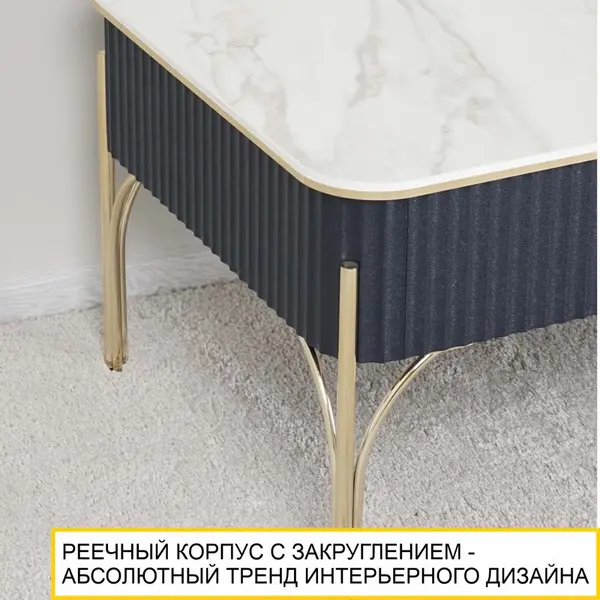 • Реечный корпус с закруглением – абсолютный тренд интерьерного дизайна, позволяющий завершить образ стола трансформера и создать оригинальную обстановку в комнате без использования дополнительного декора. Он идеально подходит как в классический, так и современный интерьер.