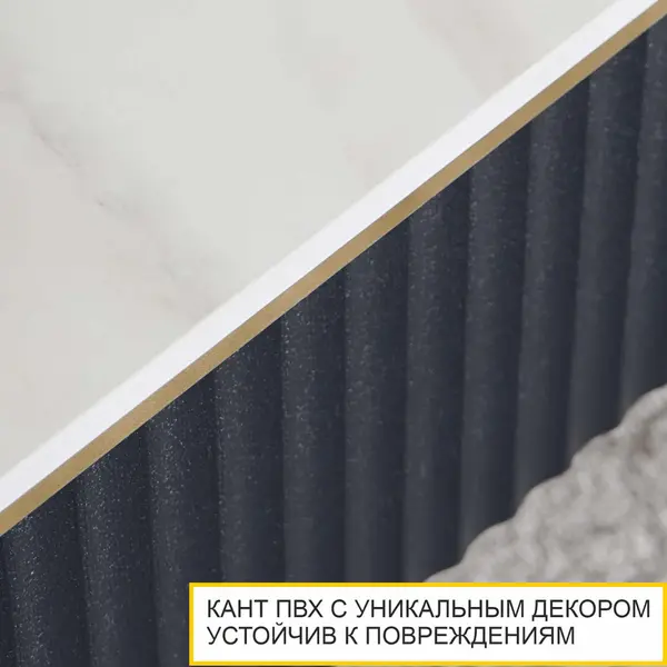 • Кант ПВХ с уникальным декором в виде золотой и белой линии добавляет столу утонченности.