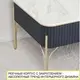 Столешница выполнена в универсальном декоре «Мрамор Империал Бежевый». Этот оттенок сочетает в себе классические бежевые тона и изысканность мрамора, а глубокий синий цвет станет акцентным элементом в интерьере. Золотые опоры подчеркивают стильный и элегантный образ стола.
