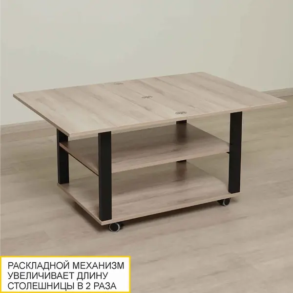 • Журнальный столик на колесиках легко и быстро сможет разложить даже хрупкая девушка.