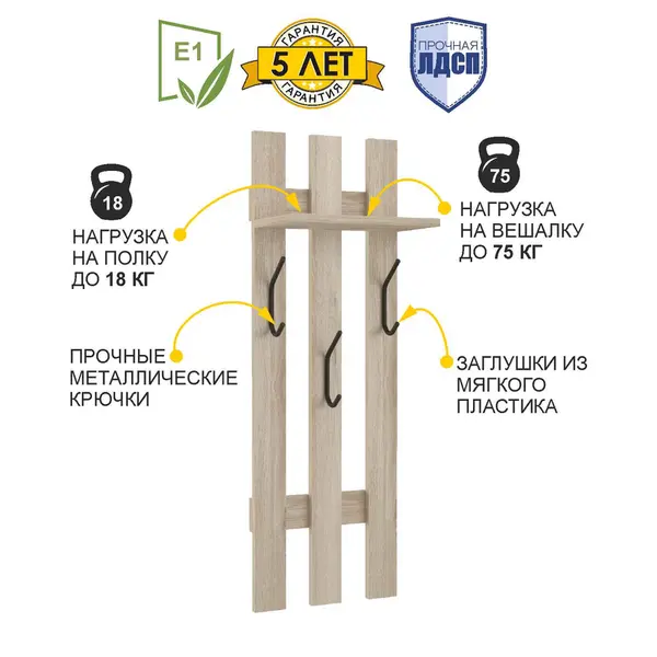 • Прочные металлические крючки стильной формы придают изделию эффектный внешний вид. Суммарная нагрузка на крючки не более 50 кг.