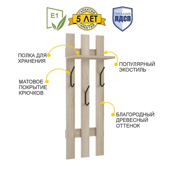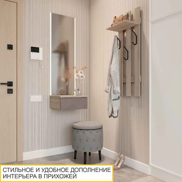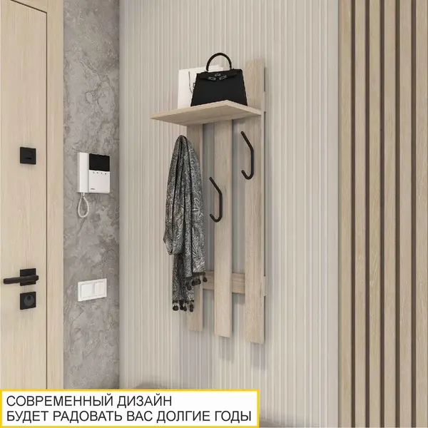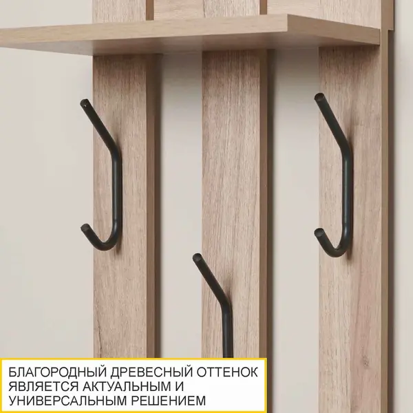 • Вешалка в прихожую оснащена полкой, что обеспечивает дополнительное место для хранения головных уборов и аксессуаров.