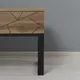 Стол выполнен в теплых оттенках натурального дерева, которые создают уютную атмосферу и ощущение близости к природе, а контрастные металлические опоры черного цвета подчеркивают современный дизайн изделия.