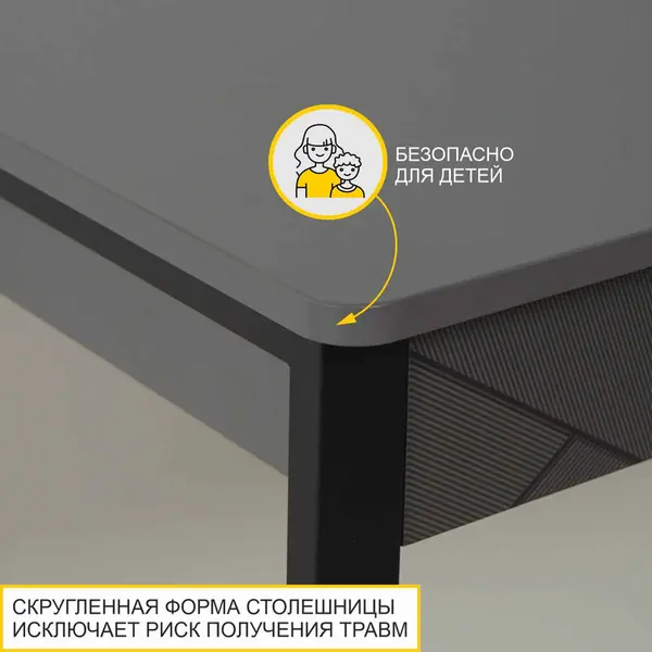 • Скруглённая форма столешницы исключает риск получения травм. Благодаря этому она безопасна для маленьких членов семьи.