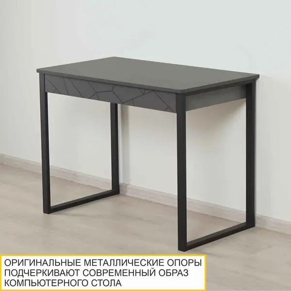 Компьютерный стол выполнен в сером цвете, который является базовым. Он прекрасно сочетается с различными оттенками и может быть с успехом применен в разнообразных стилевых решениях.