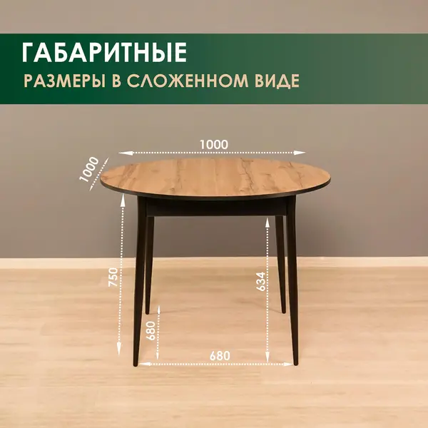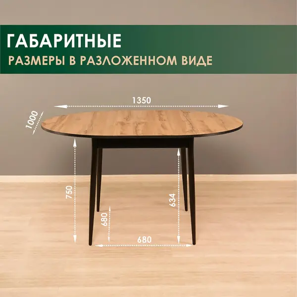 • Размер стола в сложенном виде (ШхГхВ) – 100х100х75 см, в разложенном (ШхГхВ) – 135х100х75 см.