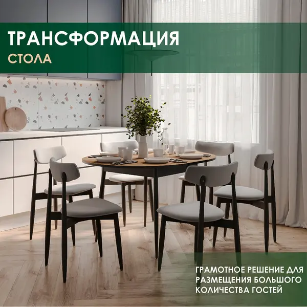 • Раскладной механизм позволяет сделать из маленького круглого обеденного стола большой стол для приема гостей.
