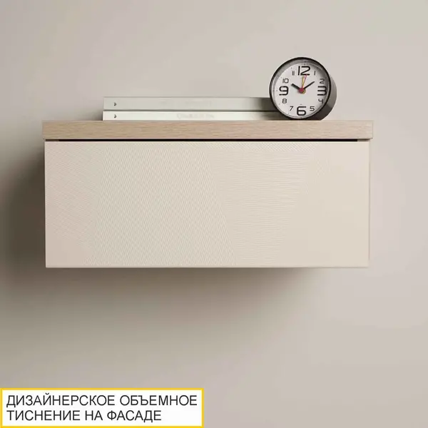 Объемное тиснение на фасаде ящика подчеркивает современный стиль тумбы подвесной и придает ему индивидуальность. Рельефный рисунок создает уникальный внешний вид, а также обладает приятной на ощупь текстурой.
