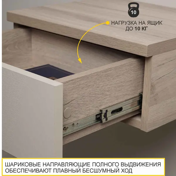 • Шариковые направляющие обеспечивают плавный бесшумный ход и длительный срок эксплуатации консоли, а полное выдвижение позволяет быстро и легко найти необходимые вещи и предметы интерьера.