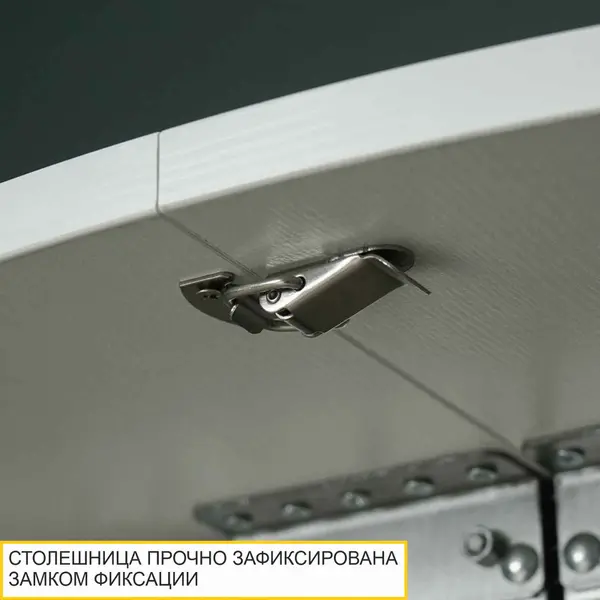 • Замок для фиксации столешницы придает жесткость конструкции как в собранном, так и в разложенном виде. Позволяет надежно зафиксировать столешницу во время эксплуатации стола кухонного раздвижного.