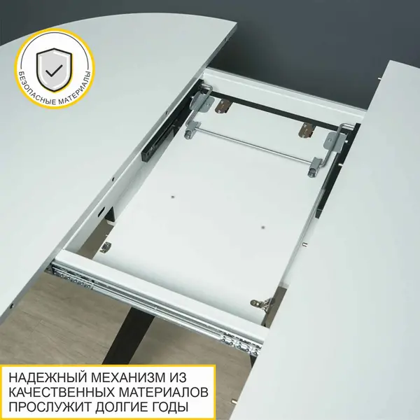 • Механизм трансформации укомплектован защитными уголками скругленной формы, которые уберегают от травм и обеспечивают безопасную и комфортную эксплуатацию стола.