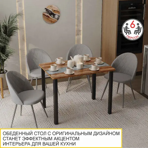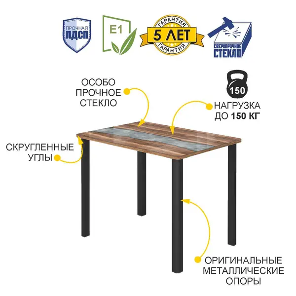• Стол на кухню устойчив к равномерно распределенной нагрузке до 150 кг, что делает его прочным и надежным.