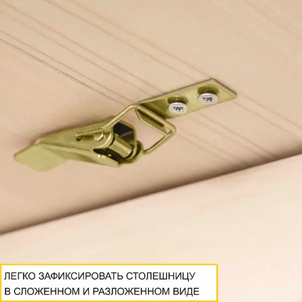 • Замок для фиксации столешницы придает жесткость конструкции как в собранном, так и в разложенном виде. Позволяет прочно зафиксировать столешницу во время эксплуатации стола.