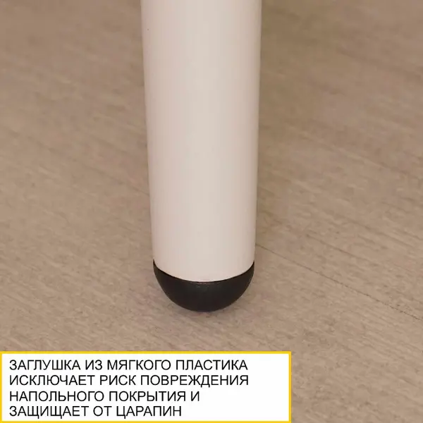 • Заглушка из мягкого пластика исключает риск повреждения напольного покрытия и защищает его от царапин. Качественный пластик исключает ломкость и обеспечивает плотную посадку заглушки в опору стола.