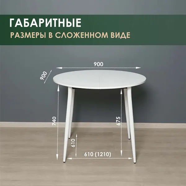 • Особенностью раздвижного стола является простота его разложения: за считанные секунды можно увеличить столешницу в 3 раза. Размеры столешницы в сложенном состоянии 900 мм (4 персон), в частично разложенном - 1200 мм (6 персон) и в полностью разложенном - 1500 мм (8 персон).