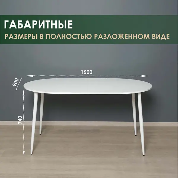 • Размер стола в сложенном виде (ШхГхВ) – 90х90х74см, а в полностью разложенном -150х90х74 см.
