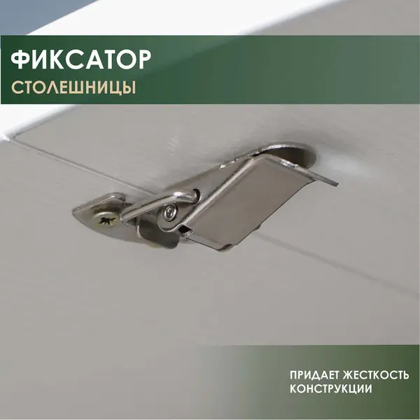 • Опоры выполнены из прочной стали толщиной 1,5 мм. Благодаря высокому качеству материала опора выдерживает повышенную нагрузку на изгиб. Многие производители экономят и используют более тонкую сталь от 1 до 1,2 мм. Опоры надежно фиксируются к столешнице за счет 8 точек крепления.