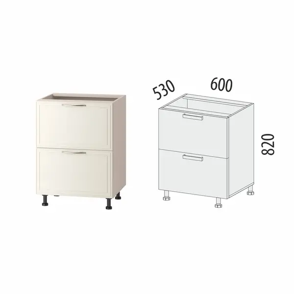 • Высота напольных шкафов составляет 820 мм (без столешницы), что обеспечивает комфортный процесс приготовления пищи.