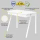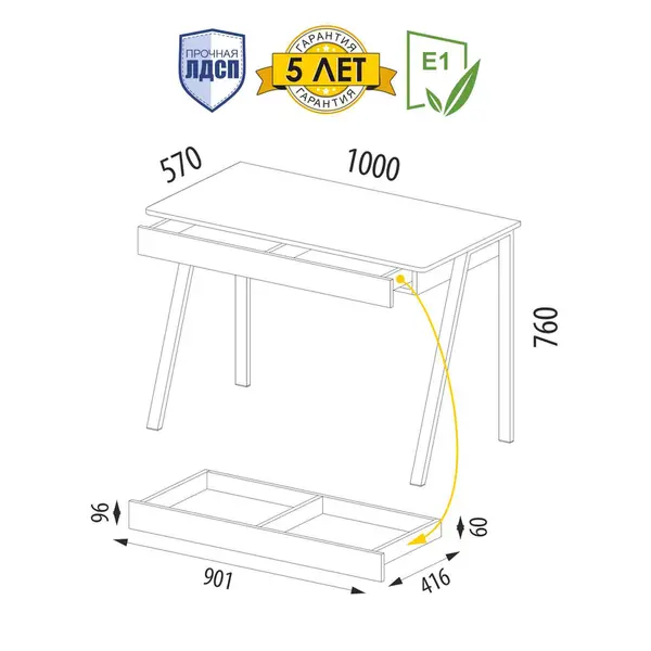 • Стол выполнен из ЛДСП повышенной прочности, материал устойчив к механическому истиранию и термическому воздействию. Благодаря высокой плотности выдерживает многократную сборку и разборку – при переезде не возникнет проблем. Материал ЛДСП безопасен для здоровья и рекомендован к производству мебели для кухни, спальни и детских комнат.