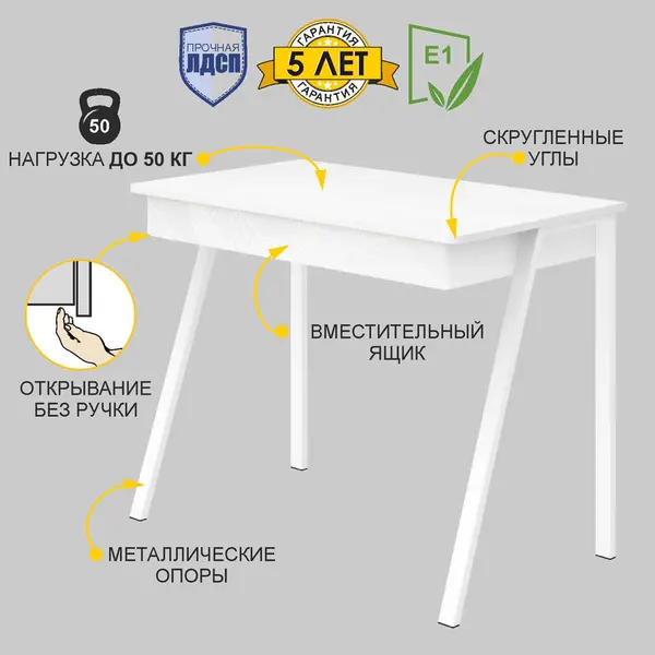 • Столешница письменного стола толщиной 16 мм устойчива к нагрузкам до 50 кг, что делает ее прочной и надежной.