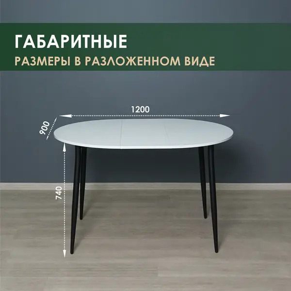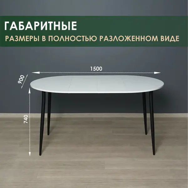 • Особенностью раздвижного стола является простота его разложения: за считанные секунды можно увеличить столешницу в 3 раза. Размеры столешницы в сложенном состоянии 900 мм (4 персон), в частично разложенном - 1200 мм (6 персон) и в полностью разложенном - 1500 мм (8 персон).
