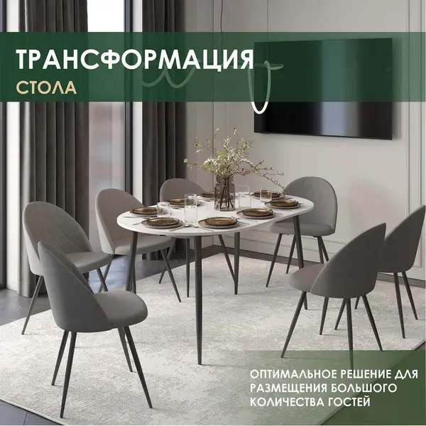 • Раскладной механизм позволяет превратить компактный обеденный стол в большой.
