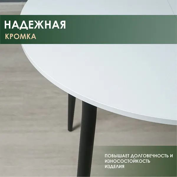 • Надежная кромка 2 мм по периметру столешницы не только придает столу раздвижному эстетичный вид, но и защищает материал от влаги и внешних воздействий. Повышает долговечность мебели.