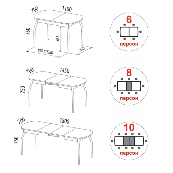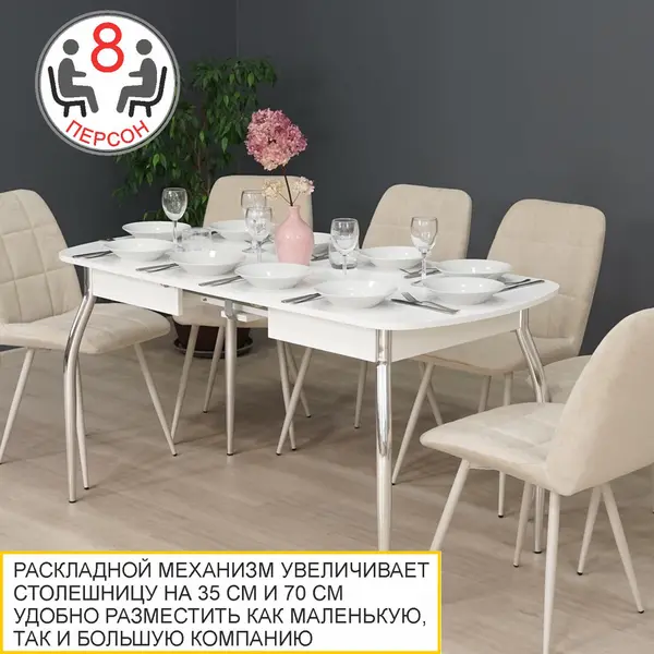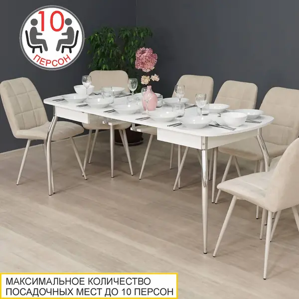 • За разложенным столом можно разместить до 10 персон.