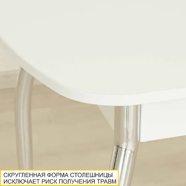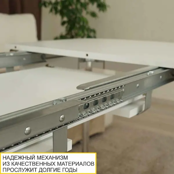 Раздвижной обеденный стол белоснежного цвета с легкой имитацией древесной текстуры очаровывает с первого взгляда. Он отлично подойдет для кухни и гостиной. За одну цену Вы фактически приобретаете три стола.