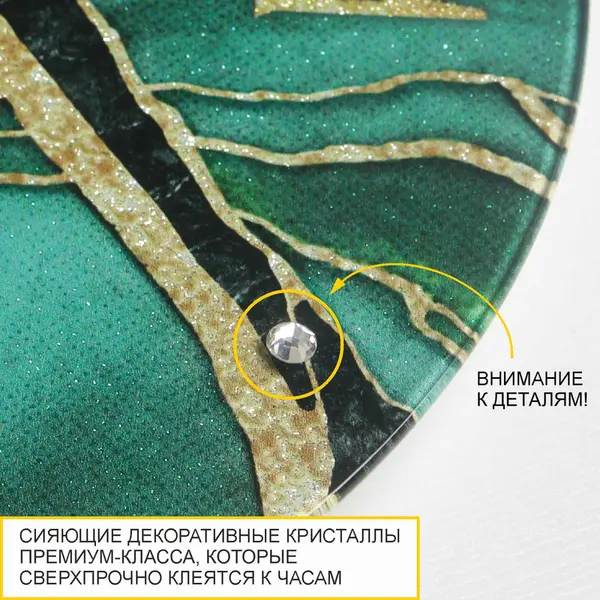• Сияющие декоративные стразы "Crystal" премиум-класса придают настенным часам изысканный вид. Стразы сверхпрочно клеятся к стеклу.