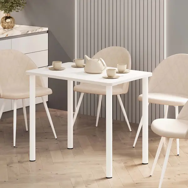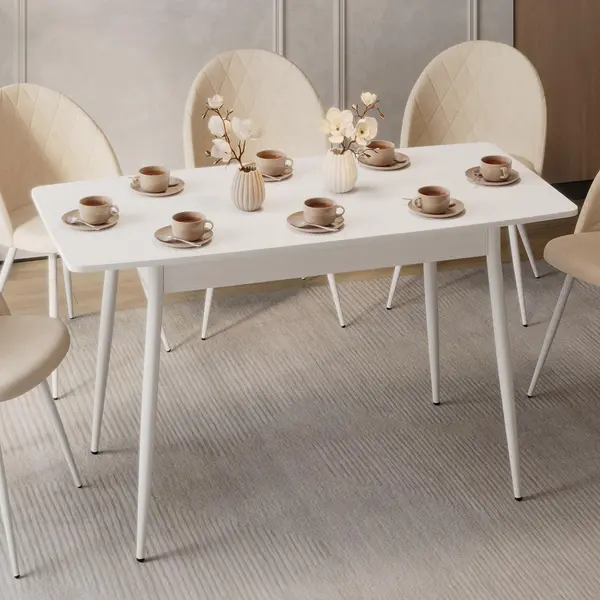 Обеденный стол выполнен в актуальном и универсальном белом цвете, он добавляет интерьеру свежести, визуально расширяет пространство и легко сочетается с любыми другими цветами и фактурами.