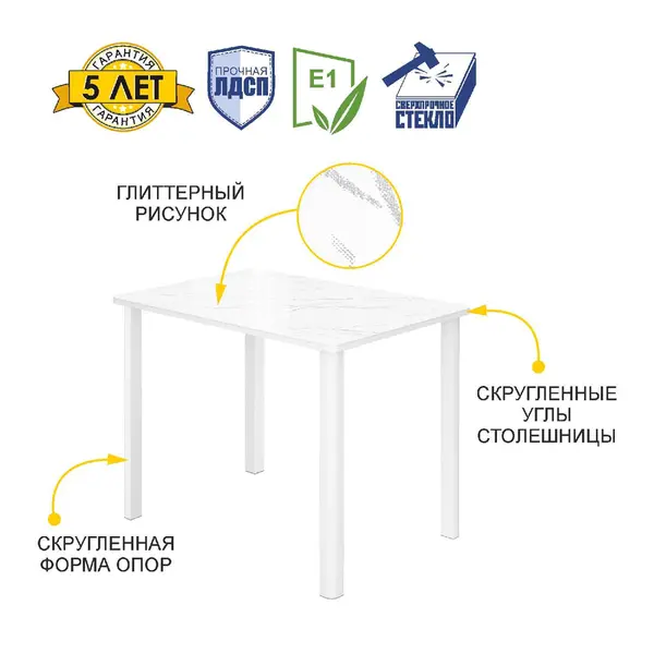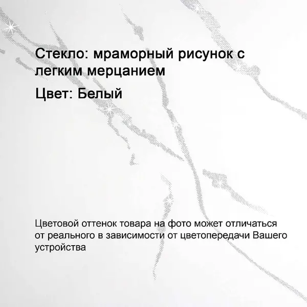 • Мраморный рисунок с легким мерцанием подчеркивает уникальный стиль стола. Рисунок нанесен с помощью специальной технологии, благодаря которой он не стирается и не выцветает со временем.