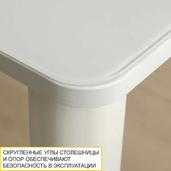 • Скругленная форма опор придает столу оригинальный внешний вид и уберегает от травм. Порошковое окрашивание опор обеспечивает отсутствие дефектов покрытия.