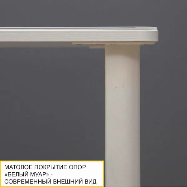 • Столешница стола толщиной 20 мм имеет глянцевую поверхность и выполнена из стекла и ЛДСП.