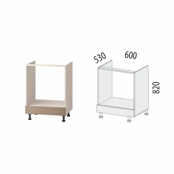 • Высота напольных шкафов составляет 820 мм (без столешницы), что обеспечивает комфортный процесс приготовления пищи.