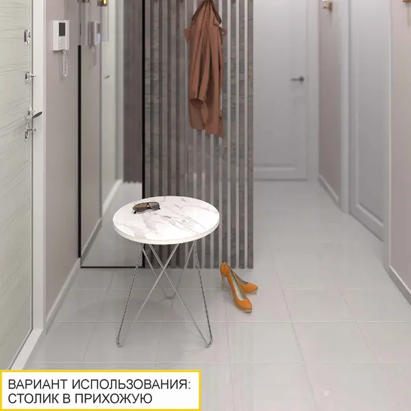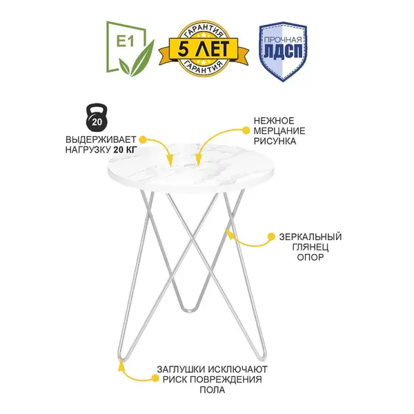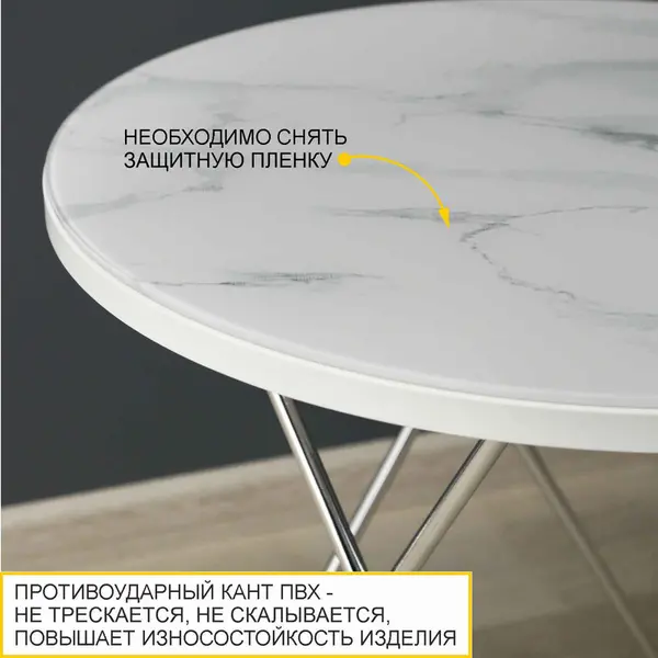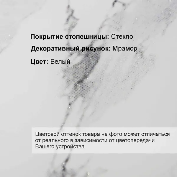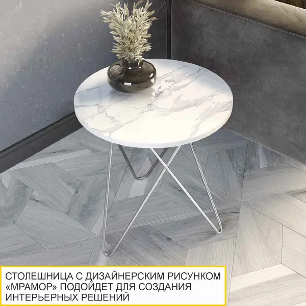 Оттенок «белый мрамор», в котором выполнен столик, является модным трендом в дизайне интерьера. Столешница с дизайнерским рисунком «под мрамор» отлично подойдет для создания стильных интерьерных решений.