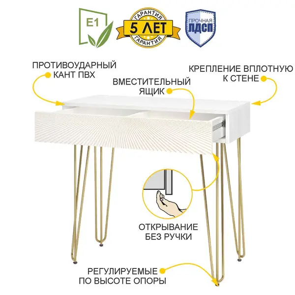 Благодаря современному дизайну косметический столик впишется в любой интерьер. Отличительная черта данной модели – это удобство и функциональность. Отличное решение для тех, кто хочет идти в ногу со временем.