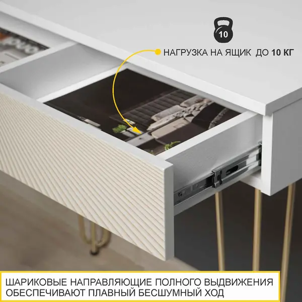 • Консоль оснащена вместительным ящиком с шариковыми направляющими полного выдвижения, что позволяет удобно организовать хранение важных предметов.