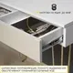 • Отсутствие лицевой фурнитуры подчеркивает современный дизайн мебели. Ящик легко и удобно открывается за счет свеса фасада.