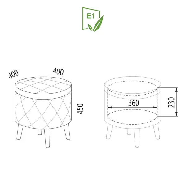 • Основа крышки пуфа изготовлена из МДФ. Материал обладает высокой плотностью и экологичностью. Такой материал безопасен для здоровья и рекомендован к производству мебели для кухни, спальни и детских комнат.